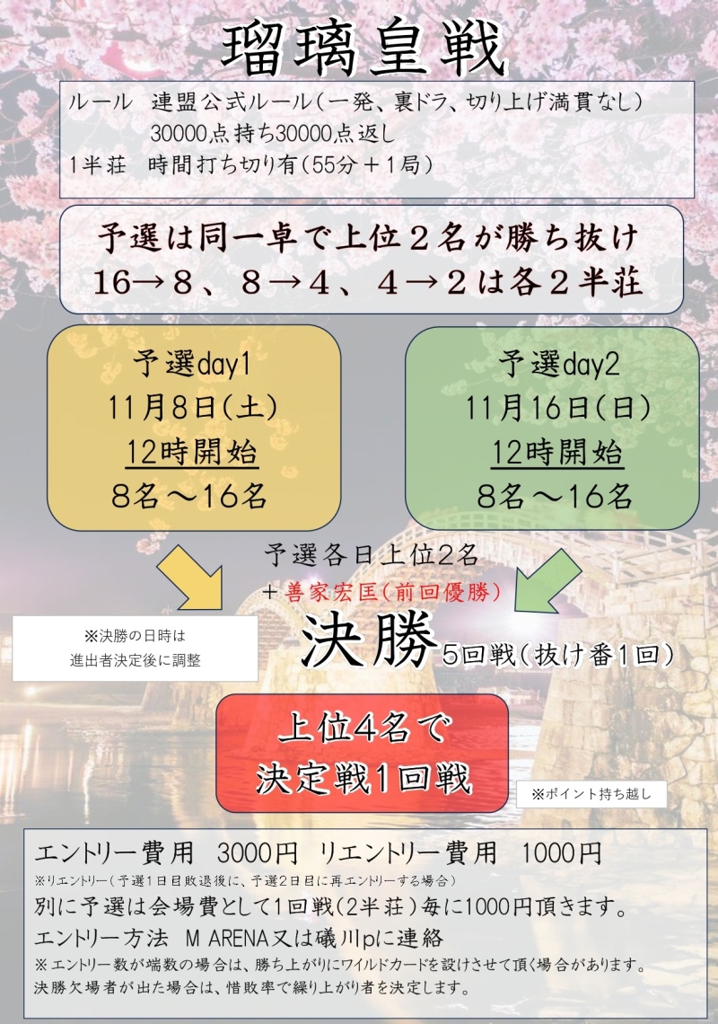 プレミアトーナメント瑠璃皇戦(るりおうせん)今年も開催!!