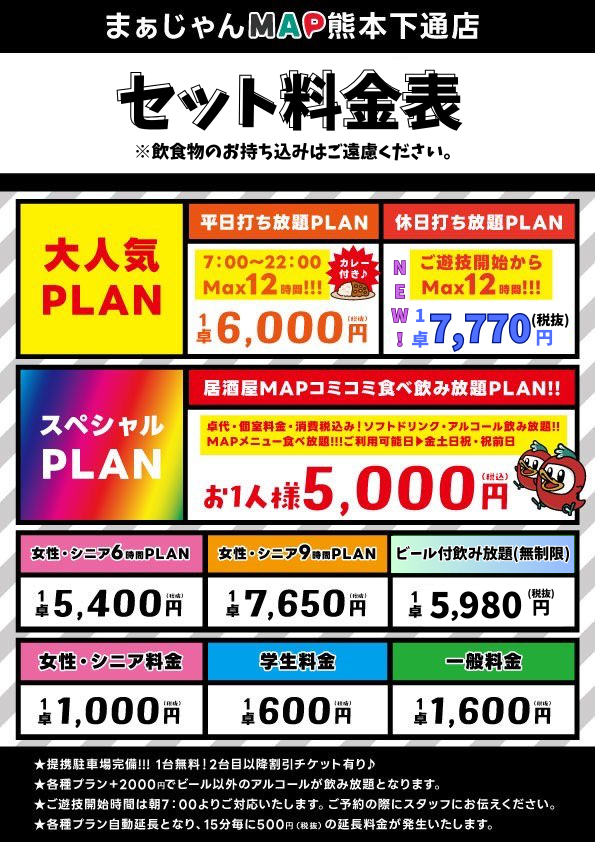 1卓7770円で12時間打ち放題!!地域最安値!!