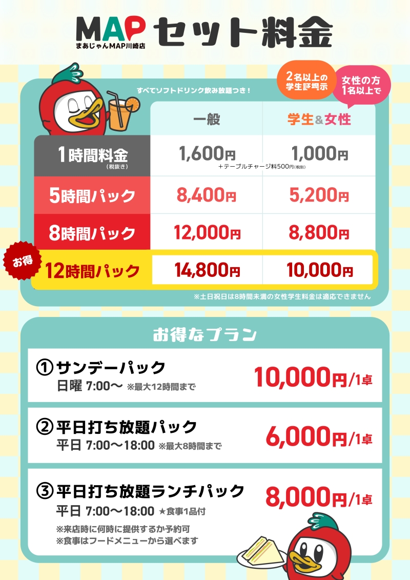 この機会に是非まあじゃんMAP川崎店をご利用ください♪