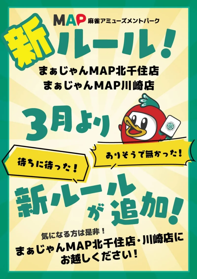 3月16日17時より、川崎本店・北千住店で四麻新ルールがスタートします!!