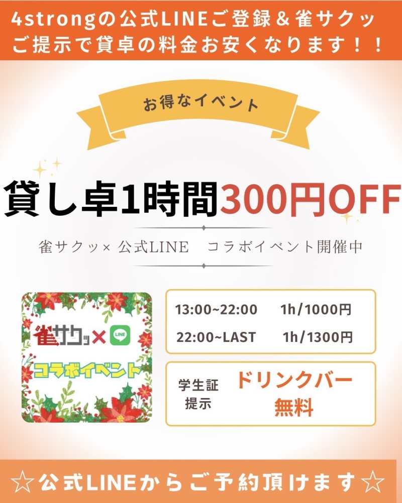 | 麻雀 4strong (フォーストロング)雀サクッ×4strong公式LINEコラボイベント開催!!