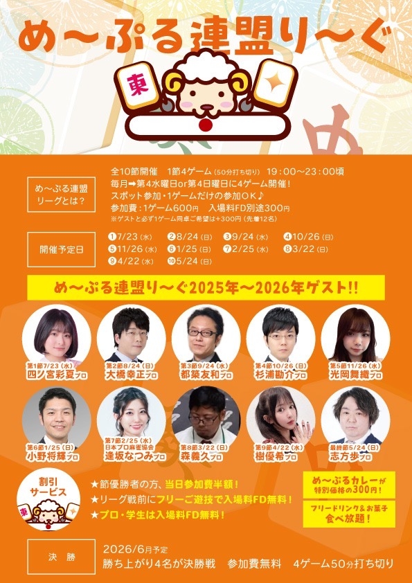 毎週土曜日12:00-18:00▶三麻ザンリーグルール(フリー形式)