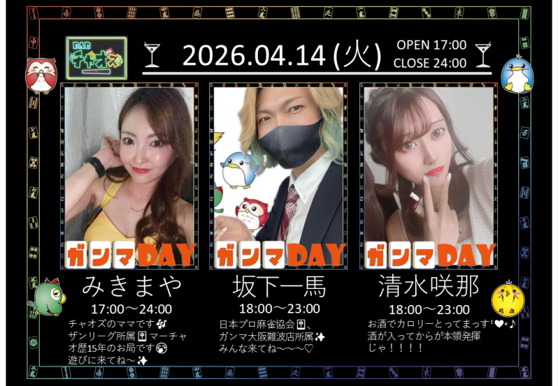 | 麻雀BARチャオズ開催期間:2026年04月14日(火) ~ 2026年04月14日(火)