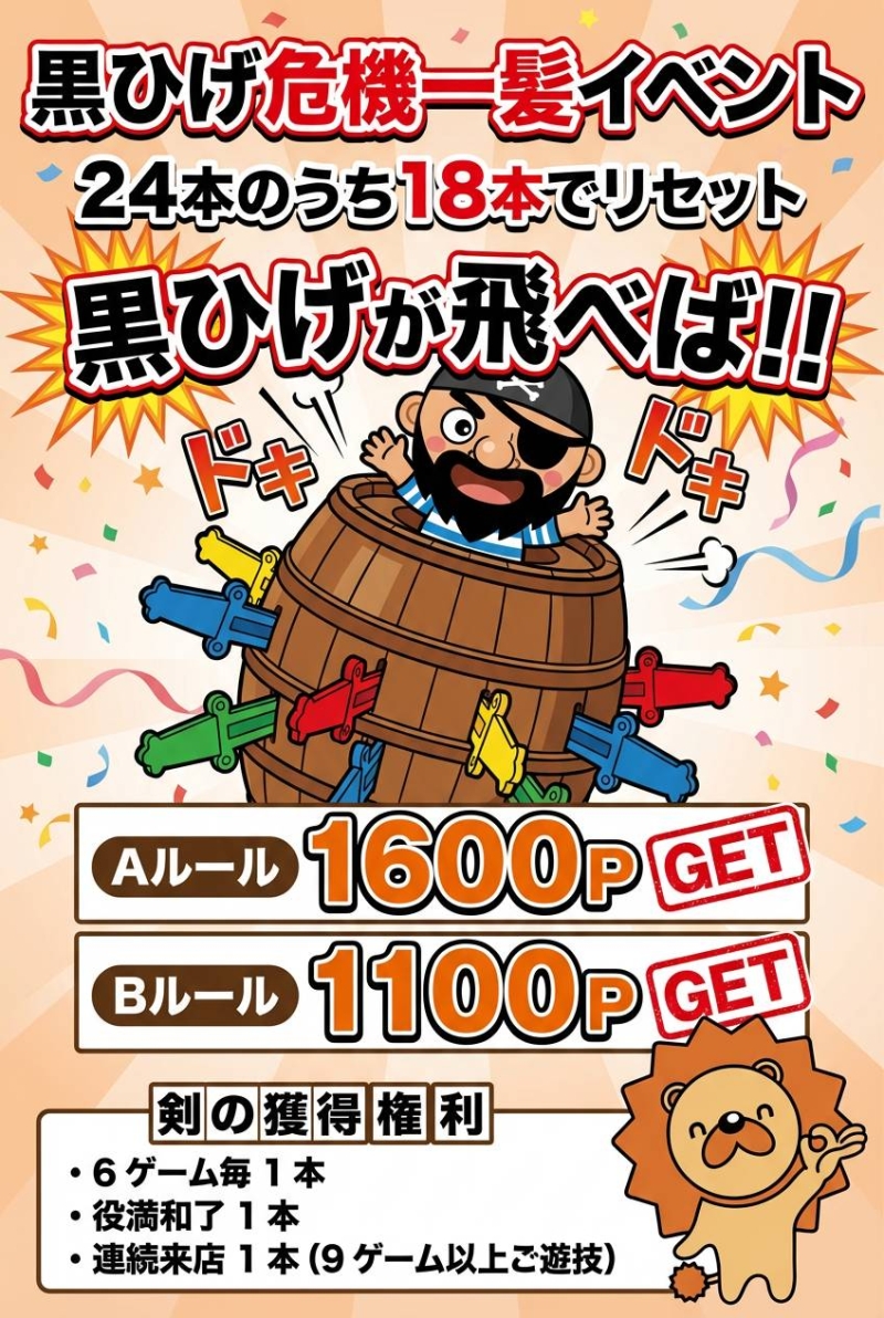 ☆会員登録すると遊ポイントがたまります!!遊ポイントは卓料金以外でご利用可能です。