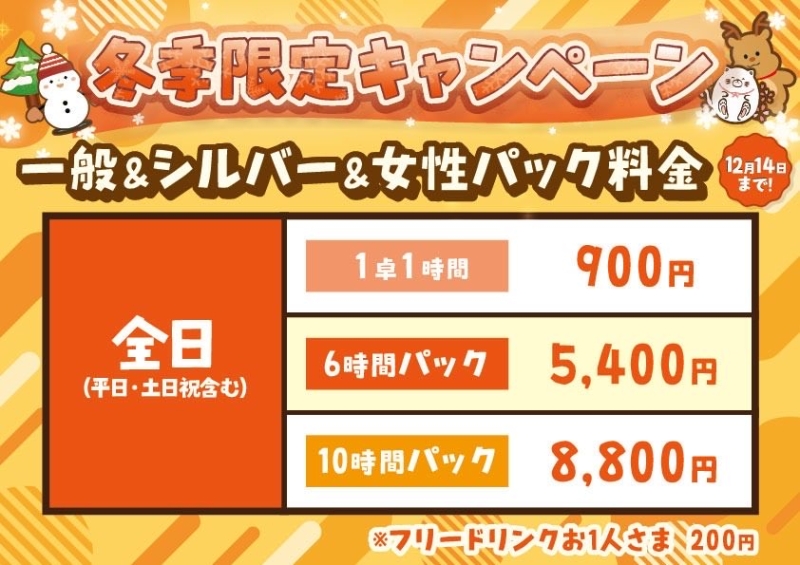 ✨ご新規様限定、フリーゲーム代が終日100円OFF(×4来店分)と終日半額(×1来店分)になる
