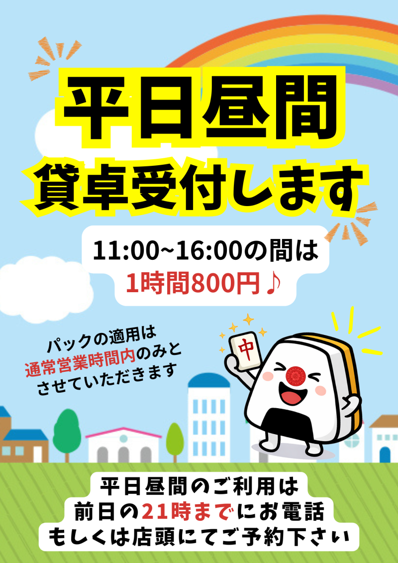 | 麻雀おむすびお客様の声にお応えし、営業開始前の11:00~16:00に貸卓営業を受付いたします♪