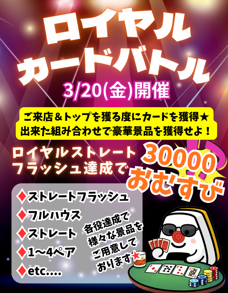 3/20(金)開催:ロイヤルカードバトル★最大30000おむすび!?
