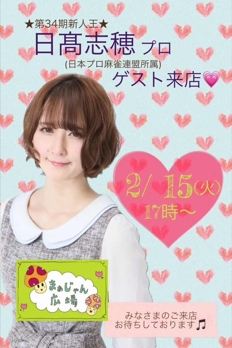 2月15日(火)第34期 新人王 日髙志穂プロ(日本プロ麻雀連盟所属)ゲスト来店
