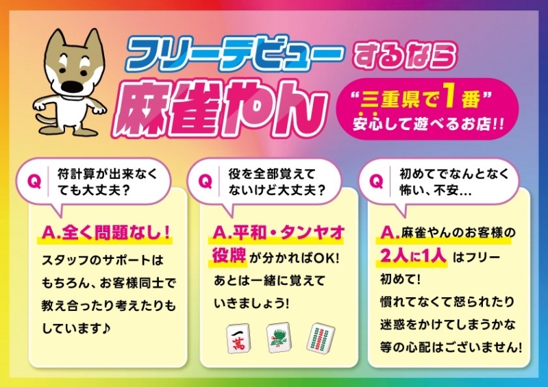 麻雀やんのフリーは、三重・四日市で一番安心して遊べるゲーム設定です。