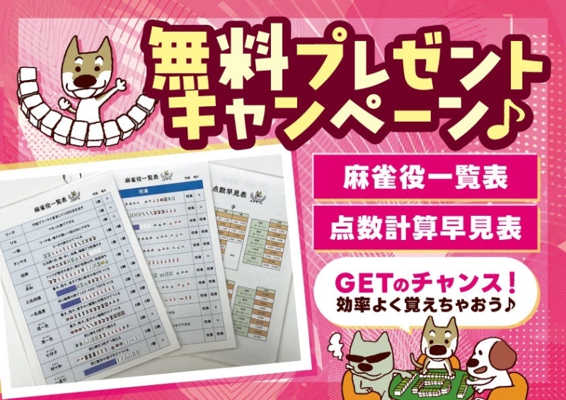 【麻雀役一覧表】【点数計算早見表】を無料プレゼント中♬