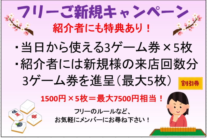 麻雀やん限定のサービスもあるかと思いますので、