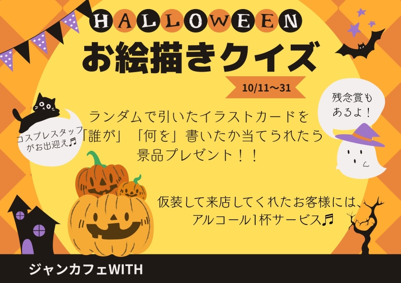 イベント期間仮装してきてくれたお客様にはアルコール1杯プレゼントしちゃいます☺