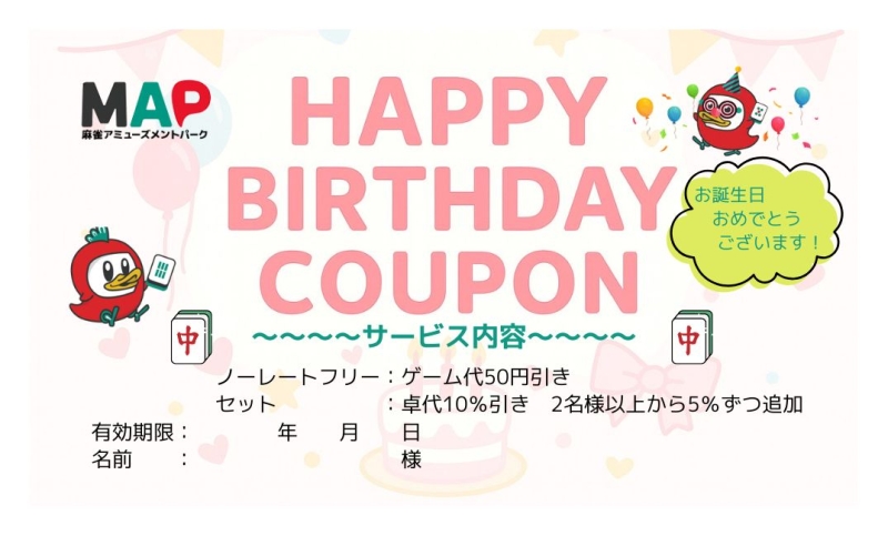 ☆会員登録すると遊ポイントがたまります!!遊ポイントは卓料金以外でご利用可能です。