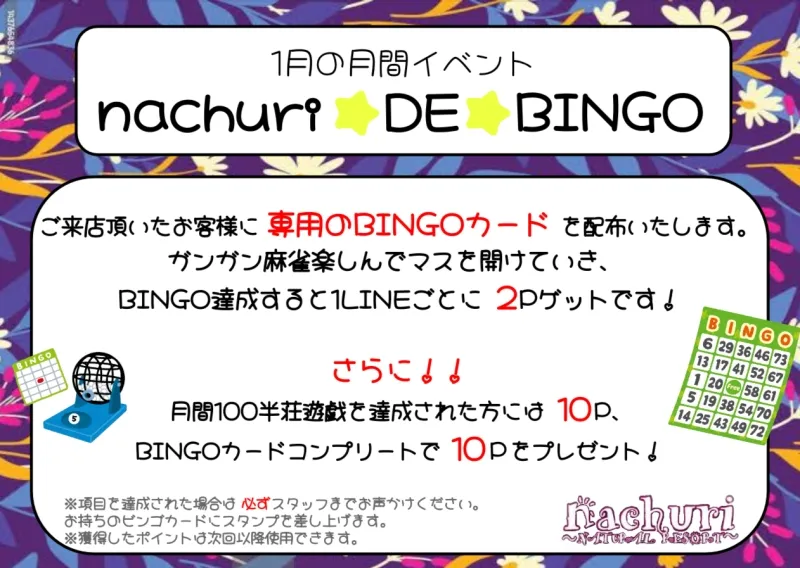 今月のイベントは【nachuri★DE★BINGO】です!