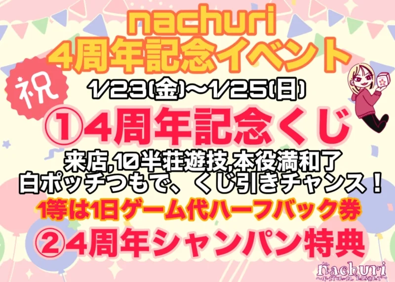 | nachuri ノーレート雀荘開催期間:2026年01月23日(金) ~ 2026年01月25日(日)
