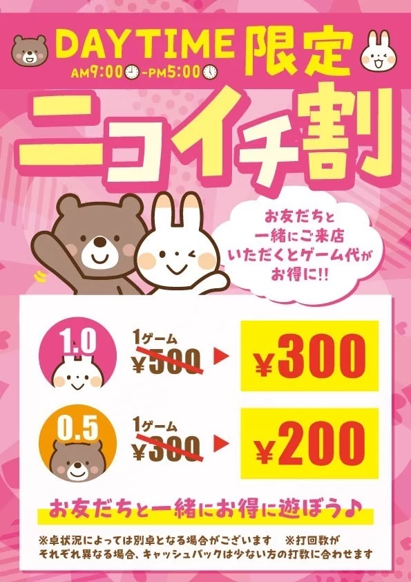 いつもより大変お得に遊べますので是非遊びにきてくださいね!