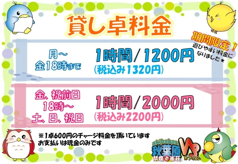 フリー、貸卓の営業はございません。
