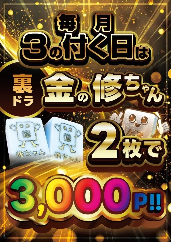 毎月3の付く日(3.13.23.30.31)は金の修ちゃん(華牌)が2枚!!