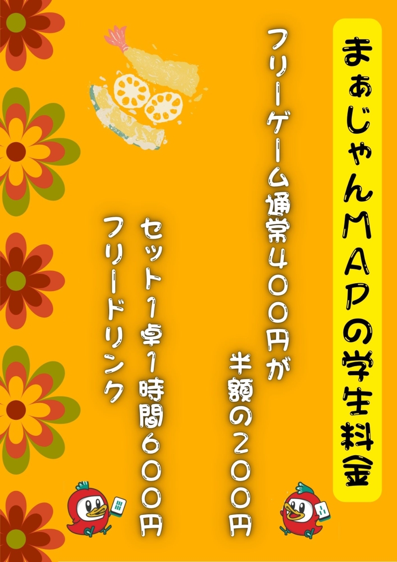 | まぁじゃんMAP 熊本下通店(銀座通り沿い)まぁじゃんMAPの学生料金