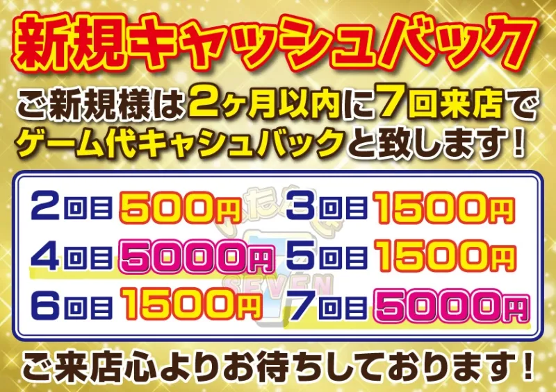 ご新規様【キャッシュバック】3回ご来店で最大9,000Pキャッシュバック!