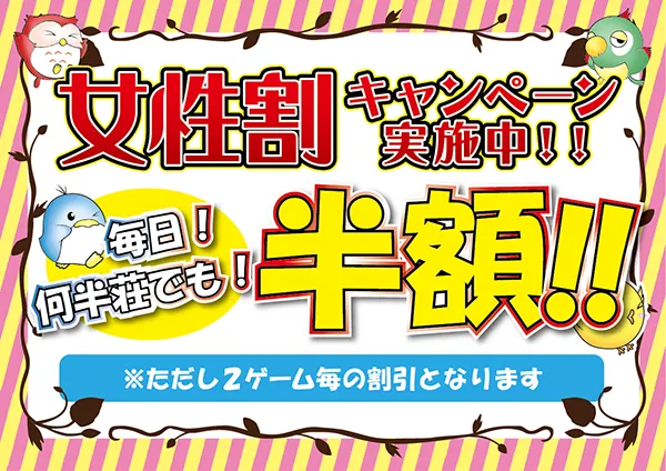 終日1000円で打ち放題♪お客様のうち、お一人様が学生でも対象となるサービスです♪