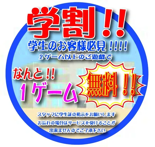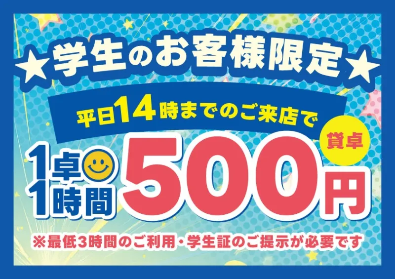 【学生セット対象】学生のお客様 お1人様1000円で終日打ち放題♪