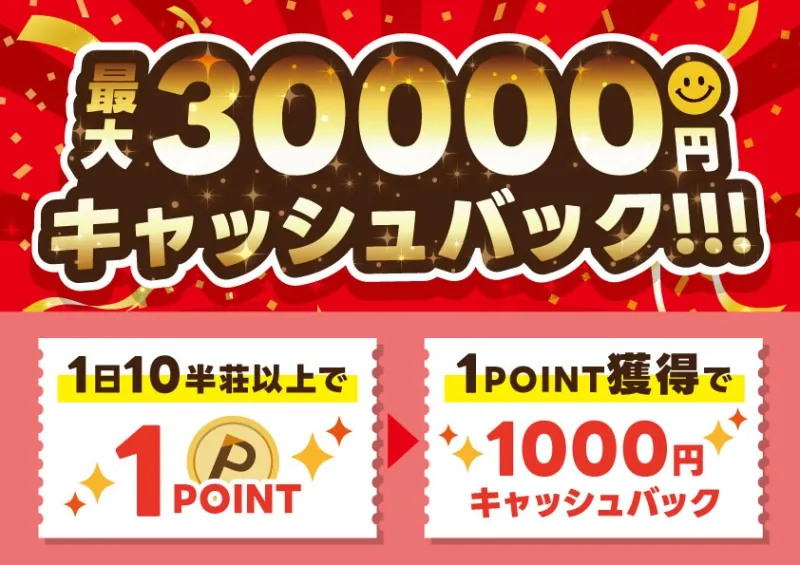 1ポイント1,000円キャッシュバック!