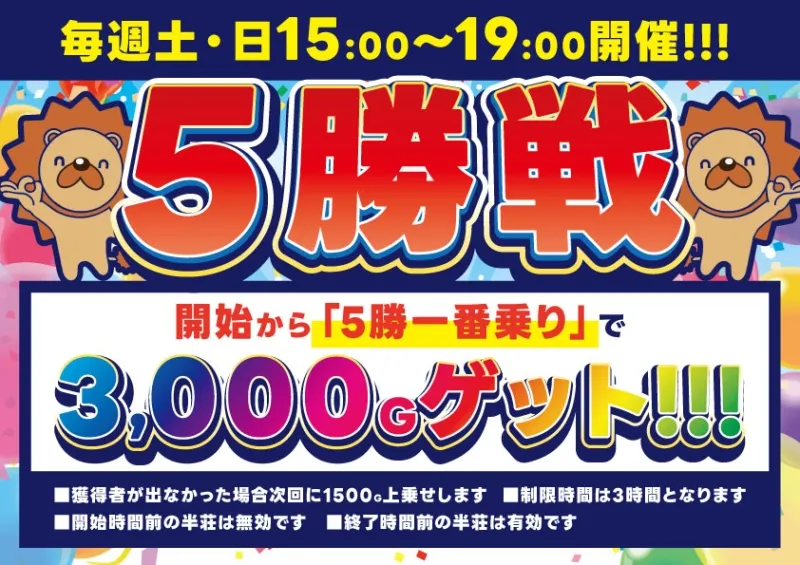 土日毎週5勝戦!キャリーオーバー中!!