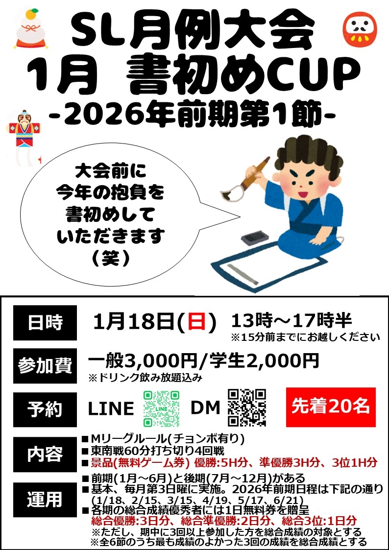 | nachuri ノーレート雀荘開催期間:2026年01月04日(日) ~ 2026年01月31日(土)