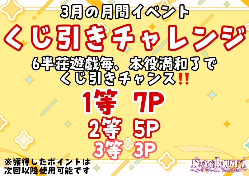 | nachuri ノーレート雀荘開催期間:2026年03月01日(日) ~ 2026年03月31日(火)