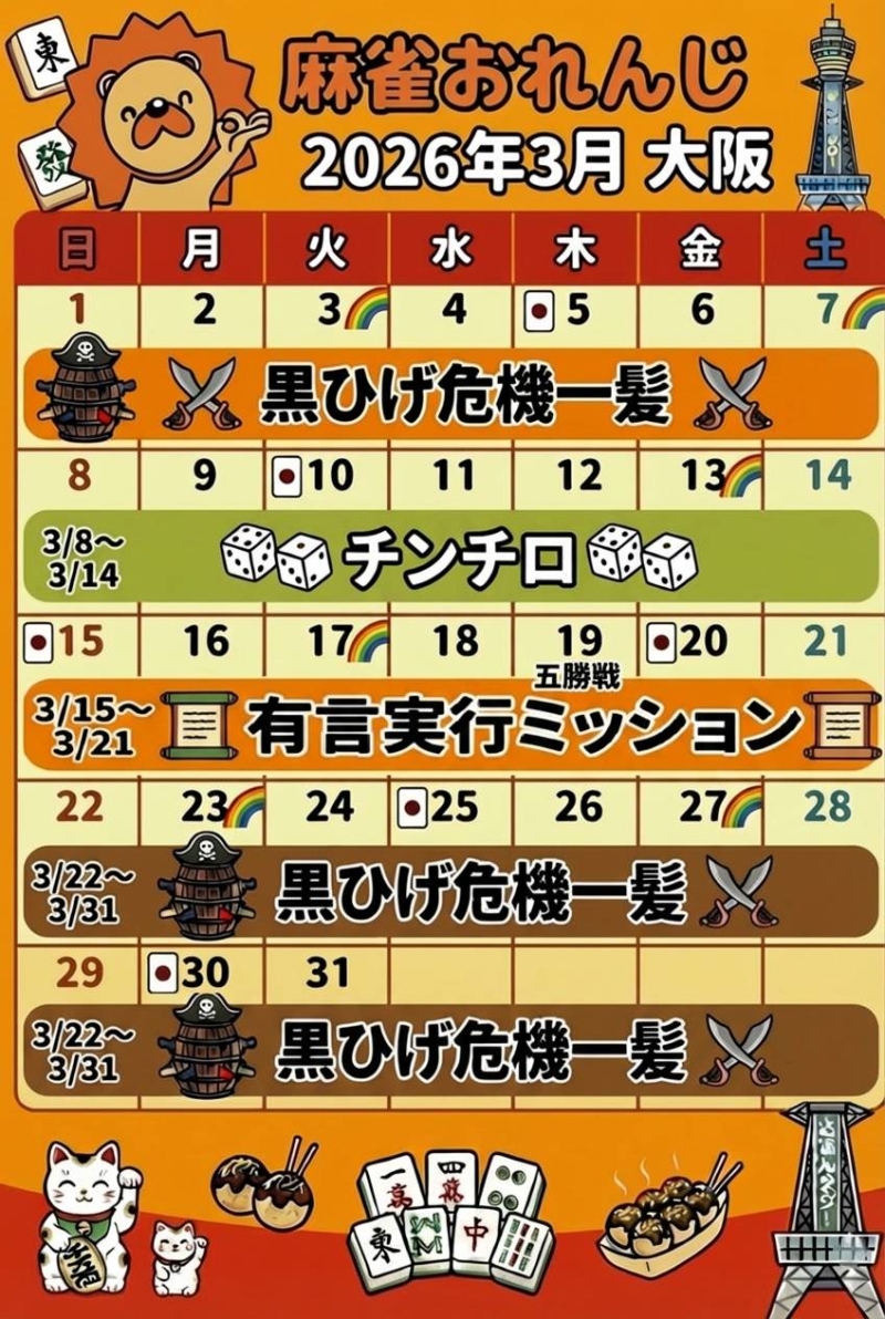 | 麻雀ハウス ポン太 難波店開催期間:2026年02月01日(日) ~ 2026年02月28日(土)