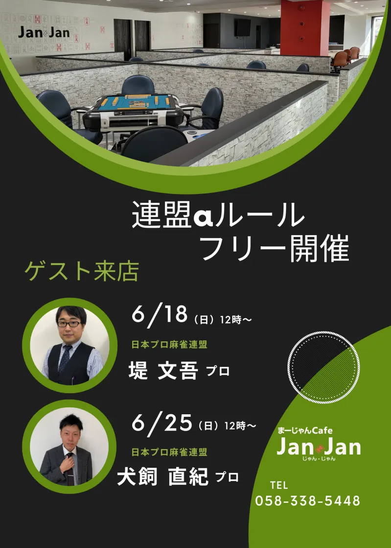 麻将連合認定プロの城島清貴&藤原健が常駐致します。