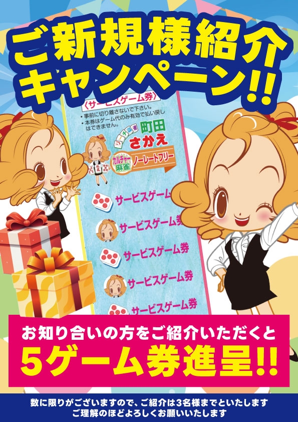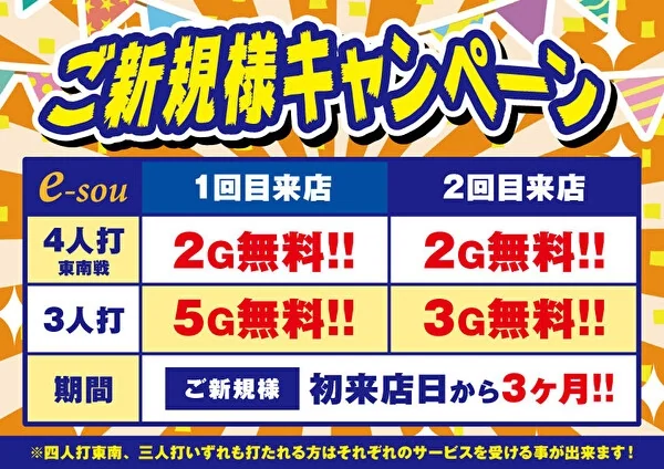 *四人打東南戦、三人打いずれも打たれる方はそれぞれのサ-ビスを受ける事ができます。