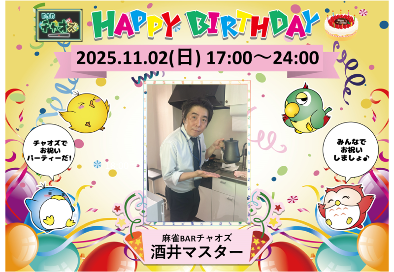 | 麻雀BARチャオズ開催期間:2025年11月02日(日) ~ 2025年11月02日(日)