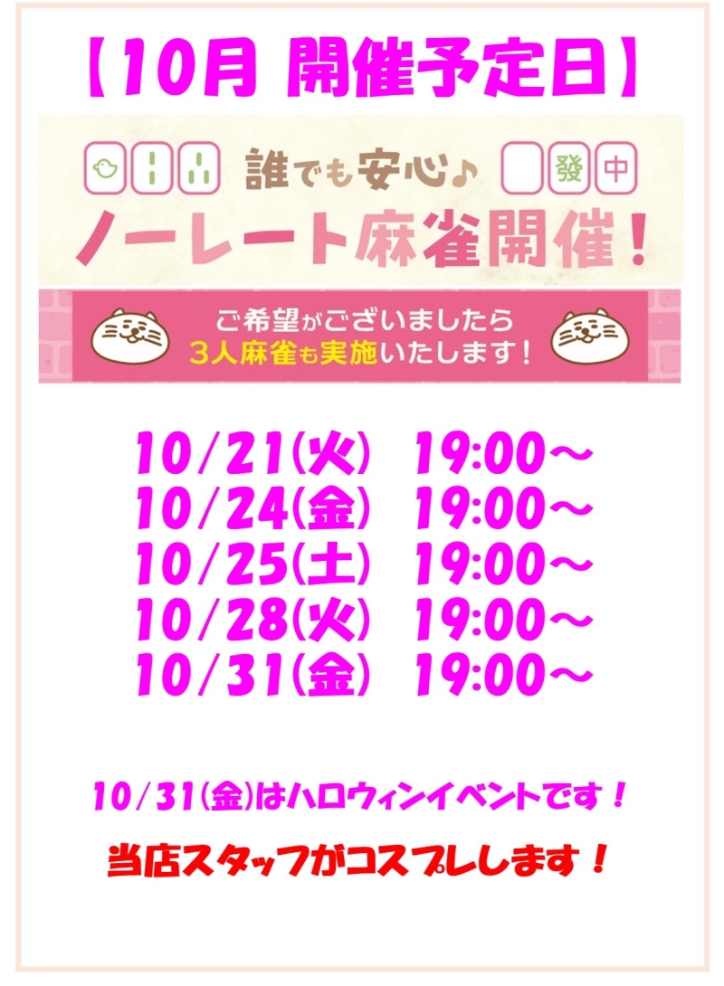 | 麻雀BARチャオズ開催期間:2025年10月28日(火) ~ 2025年10月28日(火)