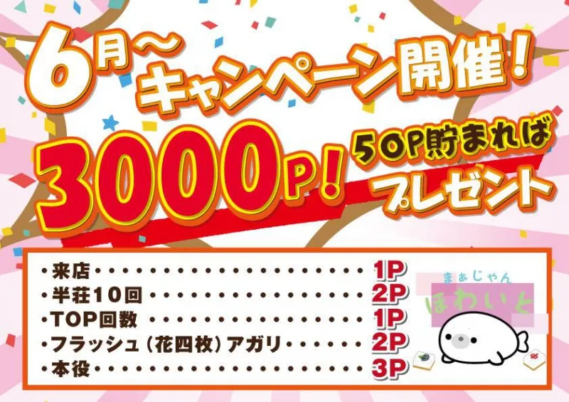 | まあじゃん ほわいと2021年6月~、キャンペーン開催!!