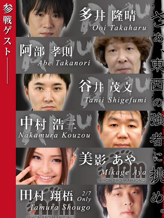 2月8日(日)まーじゃんエサカさんにて『RMU traial festa in Osaka』が開催されました。 主に関東で勢力的に活動中の麻雀プロ団体『RMU』が満を持して(?)関西に進撃!! SSライセンス所持者、多井隆晴プロを初め、阿部孝則プロ、谷井茂文プロ、中村浩三プロの名だたる4名のプロがお越しになられました。 RMUの他に、関西ゲストを代表して日本プロ麻雀協会の美影あやプロと田村翔梧プロもゲスト参戦。