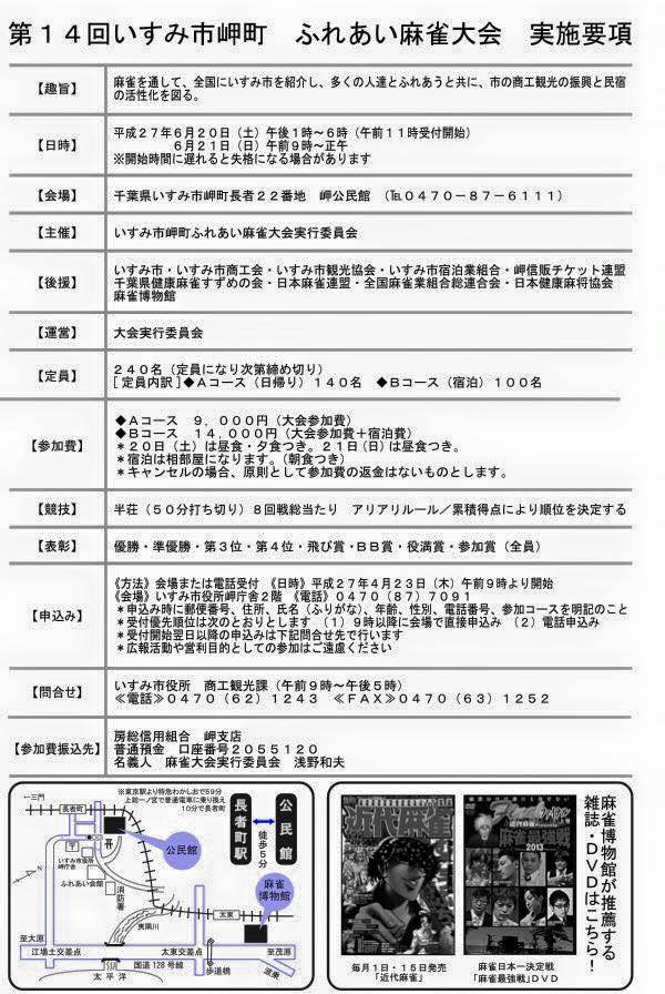 後援:いすみ市・いすみ市商工会・いすみ市観光協会・いすみ市宿泊業組合・岬信販チケット連盟・千葉県健康麻雀すずめの会