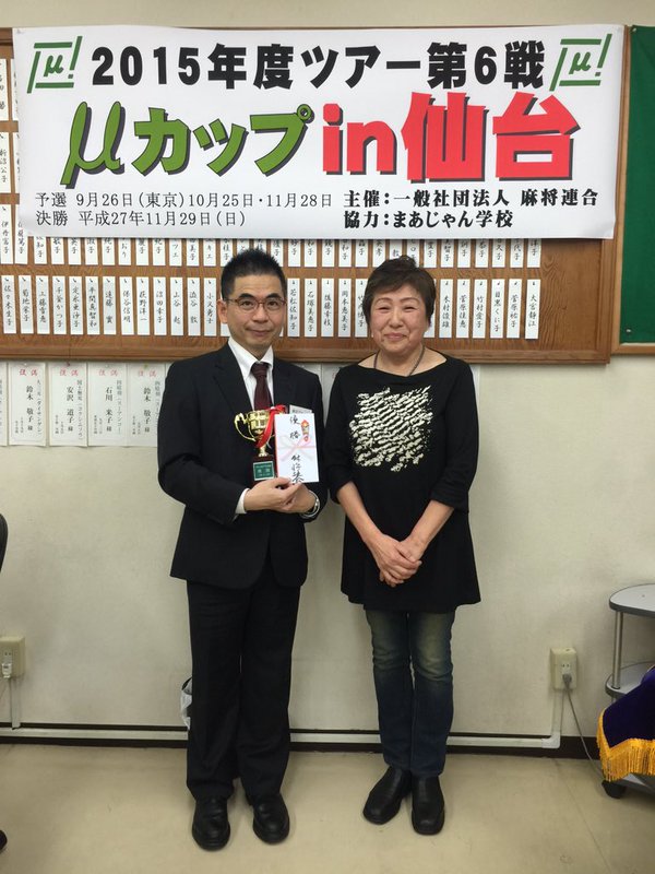 麻将連合 @mahjongMu 2015年度 ツアー第6戦 μカップイン仙台 決勝戦スコアです。 優勝 忍田幸夫P +101.6 準優勝 清水英二P +80.6 第3位 清田 脩さん +63.0 第4位 井出洋介P +46.3 忍田P優勝おめでとうございます。
