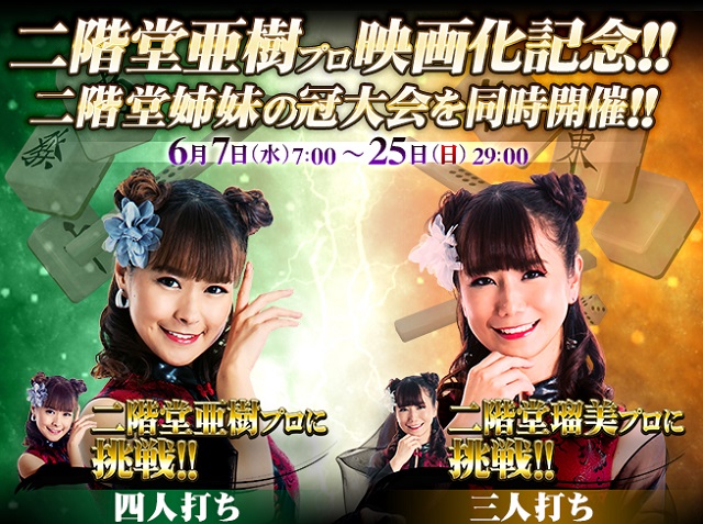 【麻雀格闘倶楽部】 二階堂亜樹プロ映画化記念!! 二階堂姉妹の冠大会を同時開催!!6/7~6/25