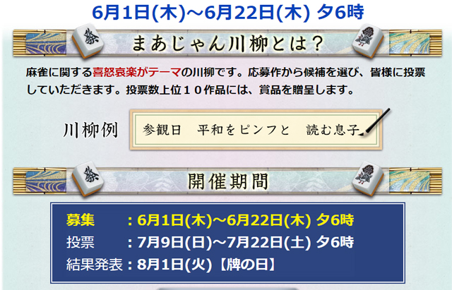 オンライン麻雀 Maru-Jan まあじゃん川柳2017 公募開始6/1(木)~6/22(木)夕6時