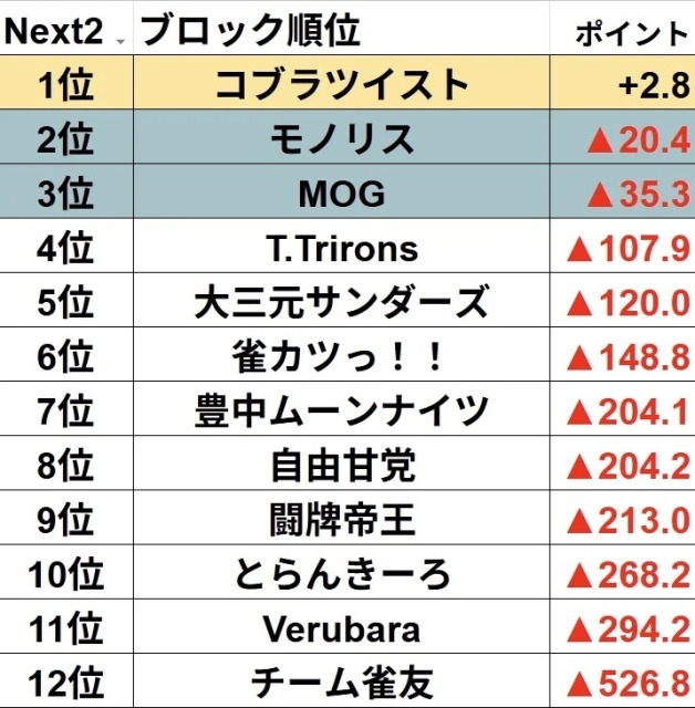 決勝ブロック 12/7 Next1ブロック 12/14 Next2ブロック 12/21