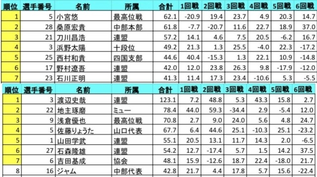 出場選手は成績表と