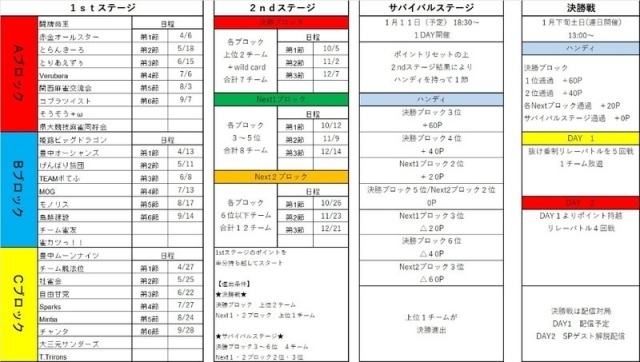 決勝ブロック 12/7 Next1ブロック 12/14 Next2ブロック 12/21