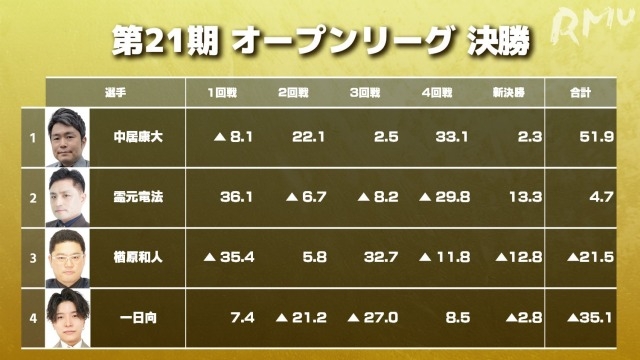 | 優勝 | 中居康大プロ(RMU(アスリート)) |