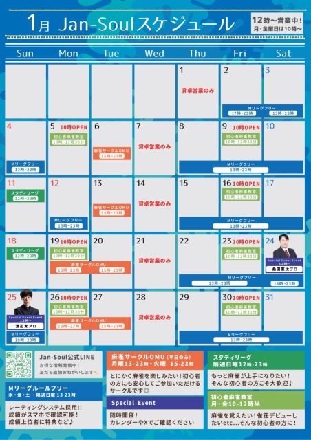大阪吹田[ジャンソウル(Jan-soul)] 【2026年1月スケジュール】