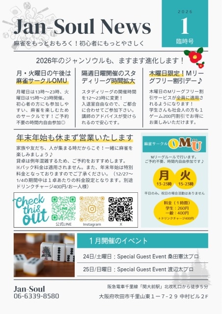 — ジャンソウル(Jan-Soul)初心者に優しい麻雀店 /大阪吹田関大前 (@Jansoul8) December 1, 2025