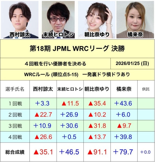 — 日本プロ麻雀連盟 速報アカウント (@JPML_sokuhou) January 25, 2026