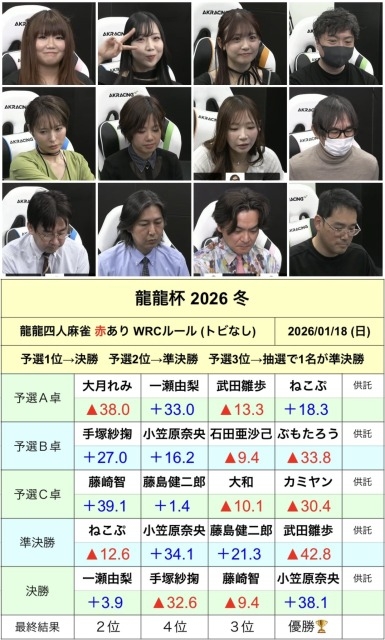 — 日本プロ麻雀連盟 速報アカウント (@JPML_sokuhou) January 18, 2026