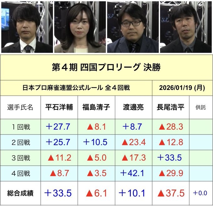 — 日本プロ麻雀連盟 速報アカウント (@JPML_sokuhou) January 19, 2026